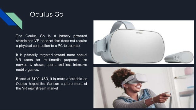 Facebook will sell a 199 standalone Oculus Go VR headset part of the social networks mission to get 1 billion people on board with. 199 Standalone Oculus Go VR Headset Arrives Next Year. At the fourth annual Oculus Connect developers conference Facebook CEO Mark Zuckerberg revealed the latest product in the family of Oculus virtual reality VR products the Oculus Go.